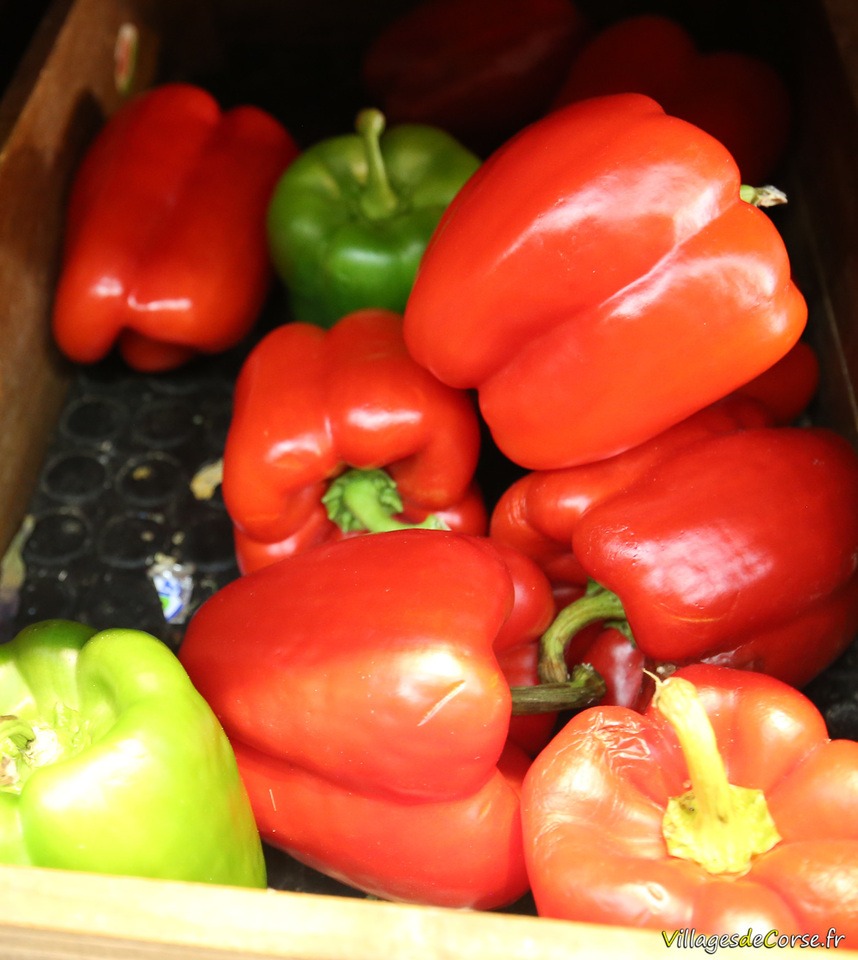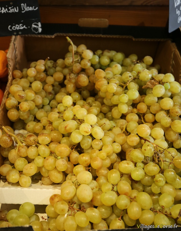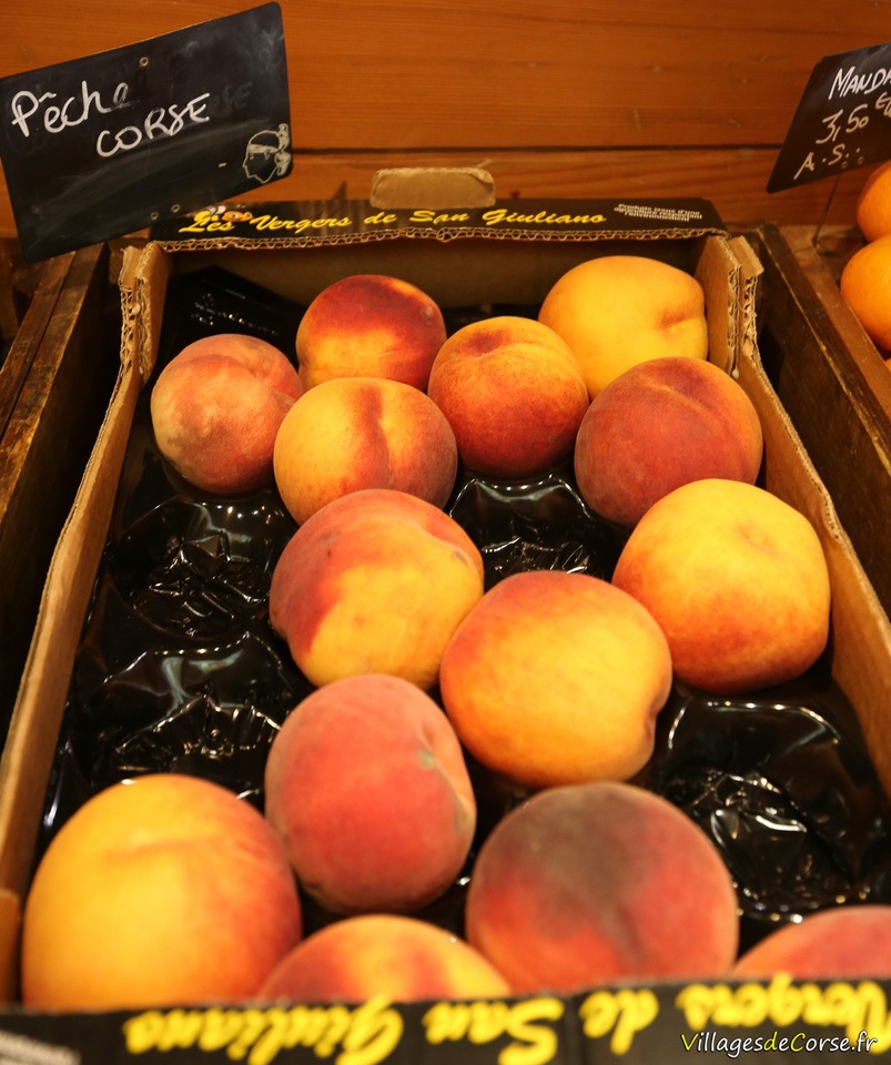 Depending on the season: Corsican clementines, Corsican tomatoes, watermelons, leeks, cucumbers, Corsican apples, oranges and lemons, grapes, chestnuts in October, Corsican almonds, and other local produce.